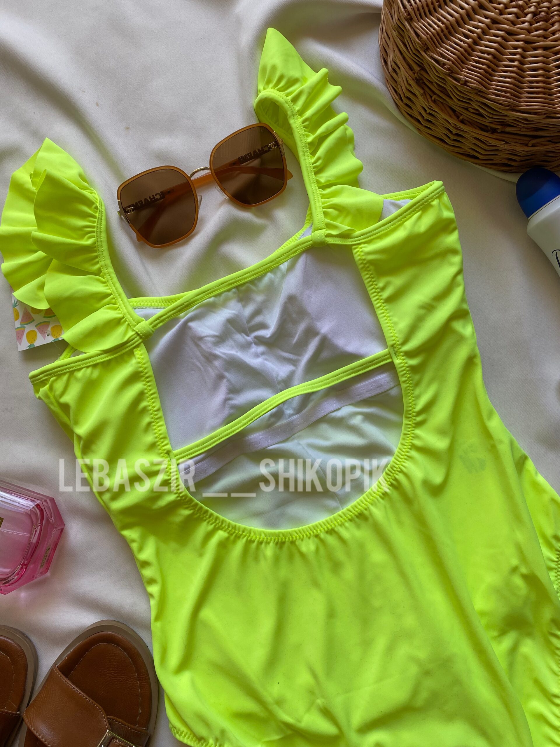 - مایو اسلیپ پشت باز با بندسرشانه چین دار